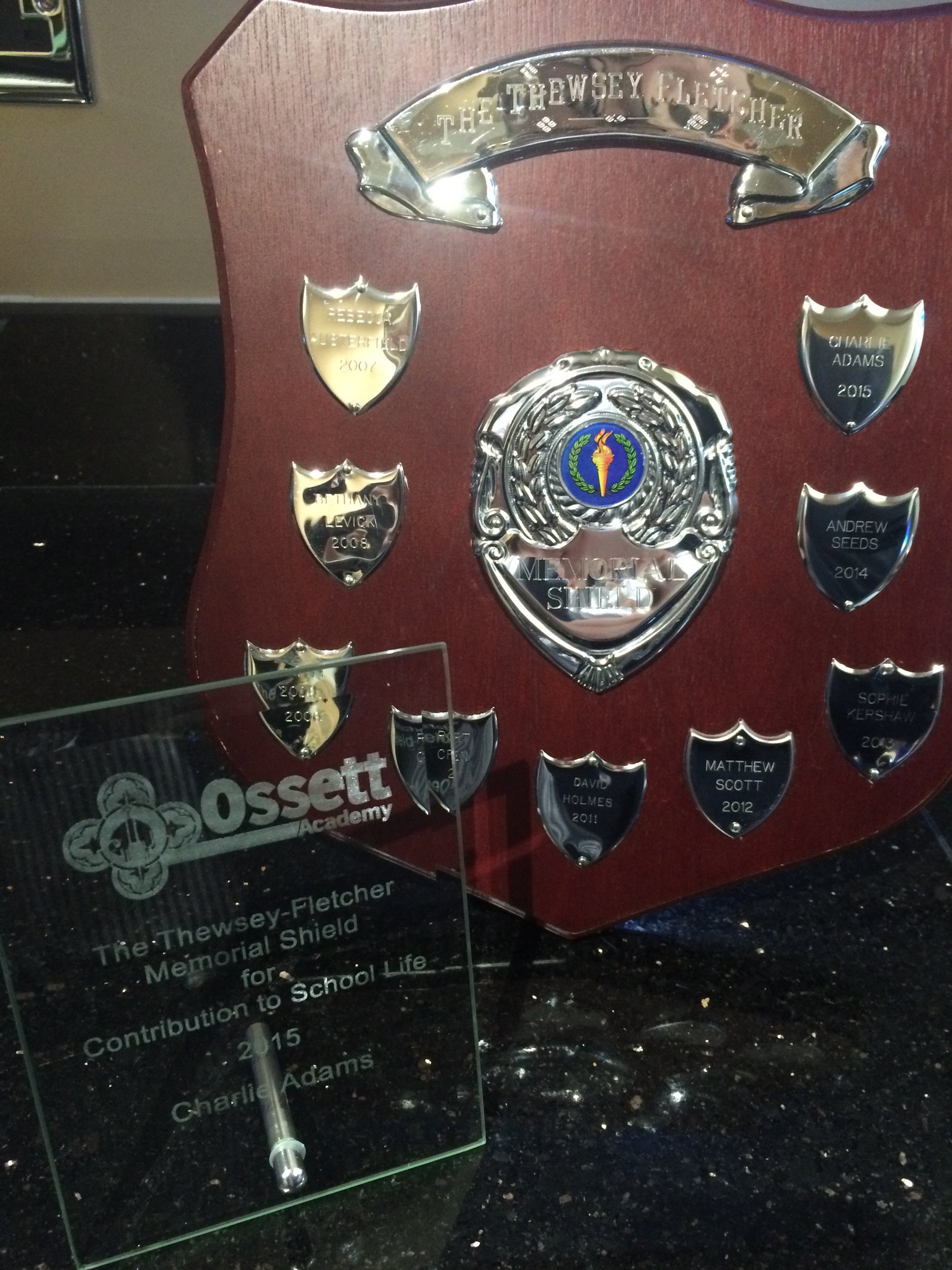 The Contribution to School Life award that I received from Ossett Academy in recognition of the project, although there were far more people than just me responsible for its success.